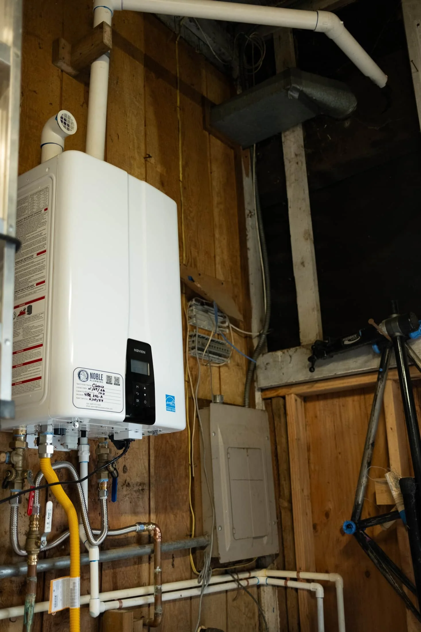 When an old water heater failed, Noble Plumbing stepped in to install a tankless system that now keeps this local family supplied with nonstop hot water.